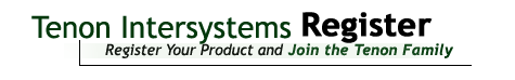 Product Registration Form To be eligible for customer service and product support you must register your purchase of a Tenon product for our records. Please complete and submit this form: Items in bold are required. | Tenon Home | Products | Order | Contact Us | About Tenon | Register | Tech Support | Resources | Press Room | Mailing Lists |